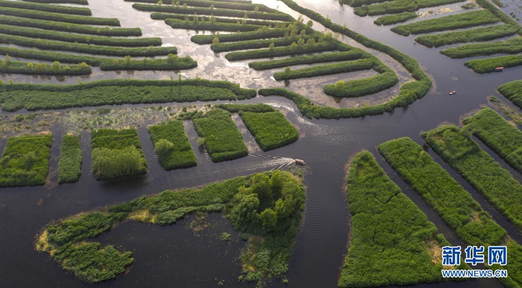 這是5月25日在雄安新區拍攝的白洋淀美景(無人機照片)。新華社記者 才揚 攝