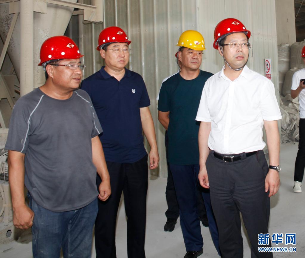 2018年8月4日,時(shí)任海城市委書記聞然(右一)在調(diào)研菱鎂產(chǎn)業(yè)發(fā)展情況。新華社發(fā)