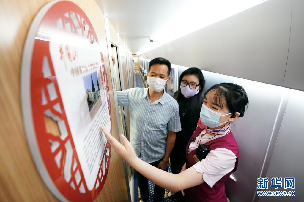 中國鐵路南昌局集團有限公司利用江西的紅色資源,通過在車上設置黨史展板,擺放關于井岡山革命精神的書籍等方式,把列車打造成“流動的黨史展覽館”。