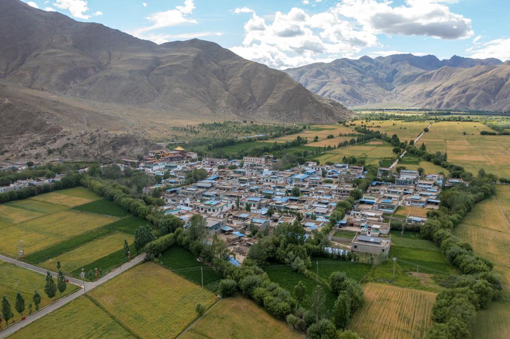 鳥瞰扎西曲登社區(2021年7月15日攝)。新華社記者旦增尼瑪曲珠 攝