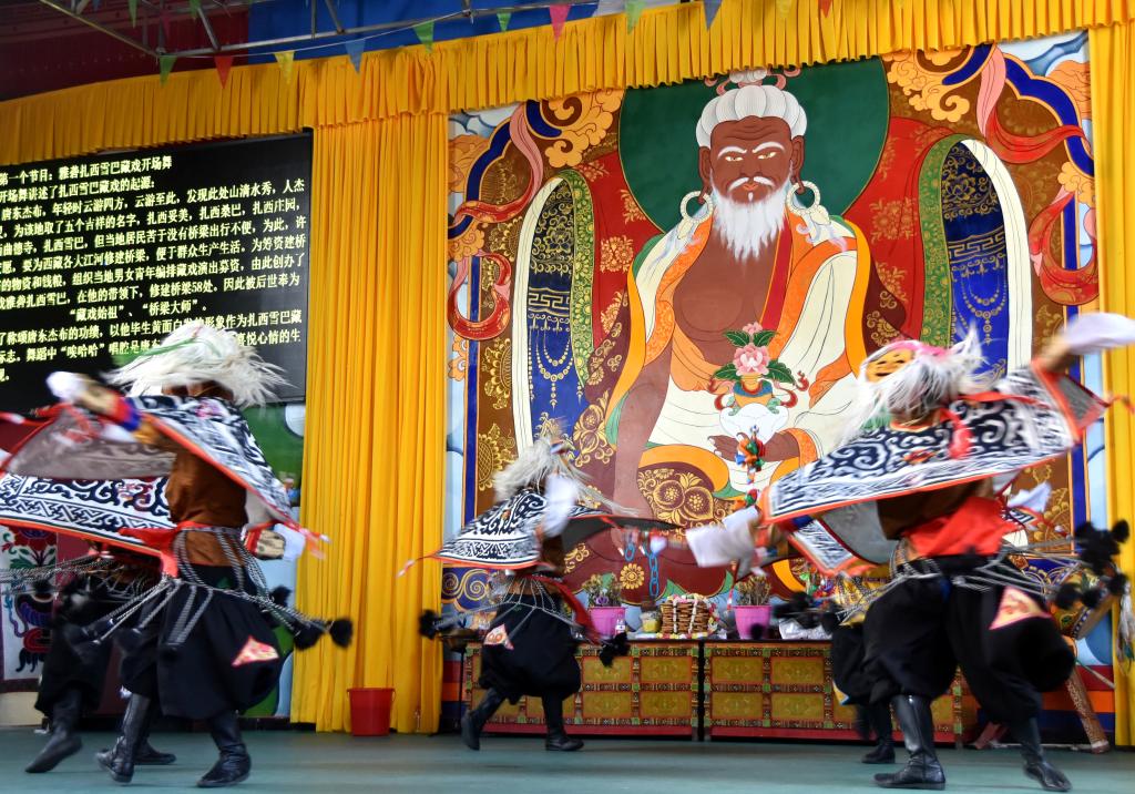 “相傳在公元15世紀,藏戲創始人唐東杰布募資修橋時途經這里,創作了雅礱扎西雪巴藏戲,600多年來傳唱不息,因此這里也被譽為‘藏戲第一村’!痹髑巧鐓^居委會主任尼瑪次仁向記者介紹。