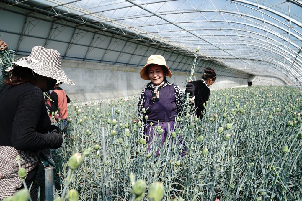 拉薩市堆龍德慶區群眾在蔬菜花卉產業園內勞作(2021年3月4日攝)。新華社記者 劉洪明 攝
