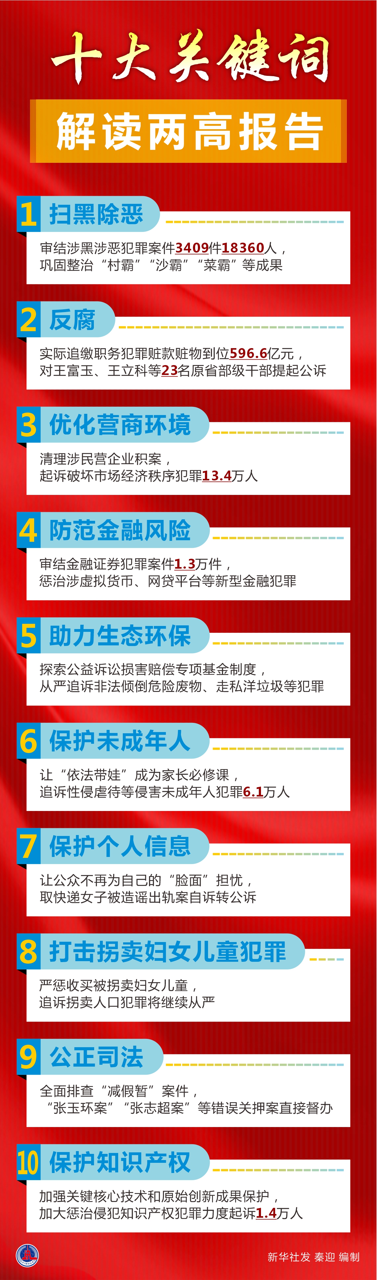 新華社北京3月8日電 題:十大關鍵詞解讀兩高報告