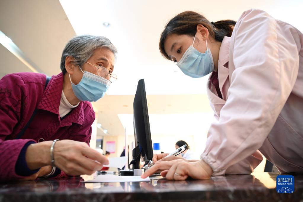 福建省三明市第一醫(yī)院的醫(yī)保辦工作人員(右)向前來(lái)咨詢藥品報(bào)銷問(wèn)題的居民講解相關(guān)政策(2020年11月18日攝)。新華社記者 姜克紅 攝