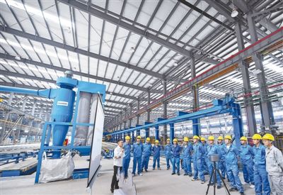 黨員志愿者走進浙江省湖州市棟梁新材有限公司車間,在企業(yè)員工休息時為他們宣講紅色革命故事。