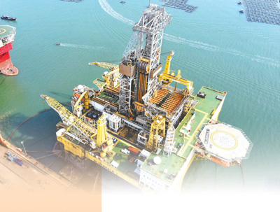 大型海工裝備“藍(lán)鯨一號(hào)”正在山東煙臺(tái)進(jìn)行維護(hù)保養(yǎng)。