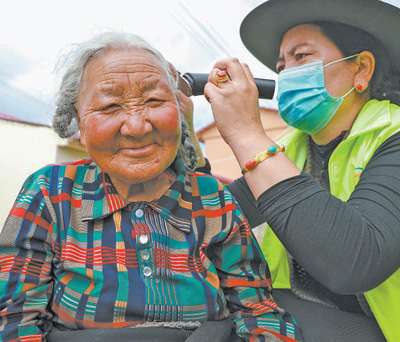 甘肅省甘南藏族自治州碌曲縣社會(huì)綜合福利院,護(hù)理人員給老人理發(fā)。近年來(lái),甘南州累計(jì)投入資金2.5億元,用于養(yǎng)老機(jī)構(gòu)建設(shè)、居家養(yǎng)老運(yùn)營(yíng)補(bǔ)貼和設(shè)施配備維修等,已建成59個(gè)公辦養(yǎng)老機(jī)構(gòu)和320家農(nóng)牧村互助幸福院。