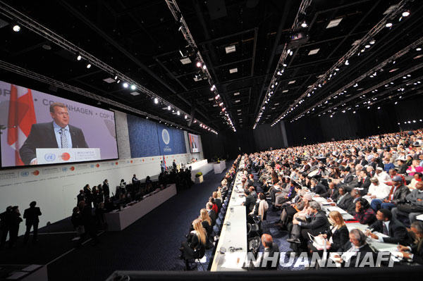 12月7日,在丹麥首都哥本哈根,丹麥首相拉斯穆森致開幕辭。新華社/法新