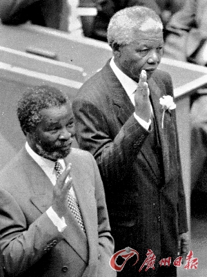 1994年5月9日,曼德拉(右)在南非國民議會上宣誓就任總統。 (資料圖片)