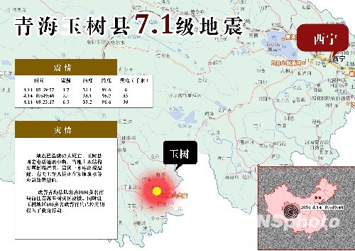 北京時間14日07時49分許,青海省玉樹藏族自治州玉樹縣(北緯33.1,東經96.7)發生7.1級地震,震源深度33千米。本次地震屬淺源性強震,目前傷亡不詳。
