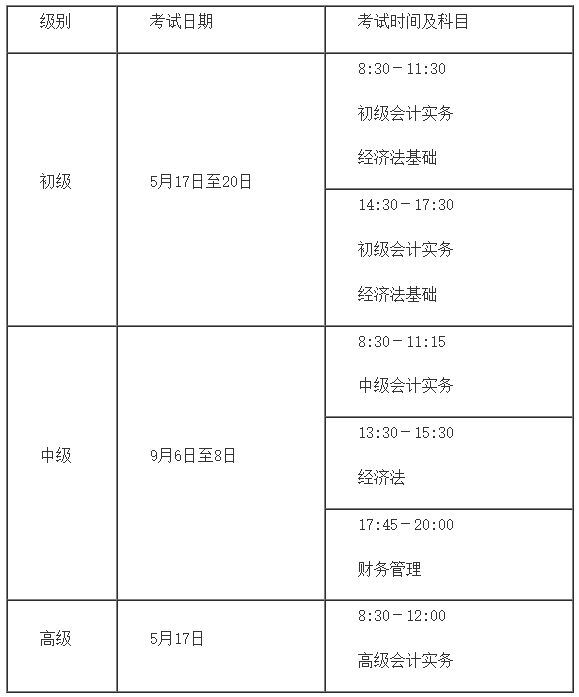 4.2025年5月17日至20日,組織初級會計資格考試,5月17日組織高級會計資格考試。