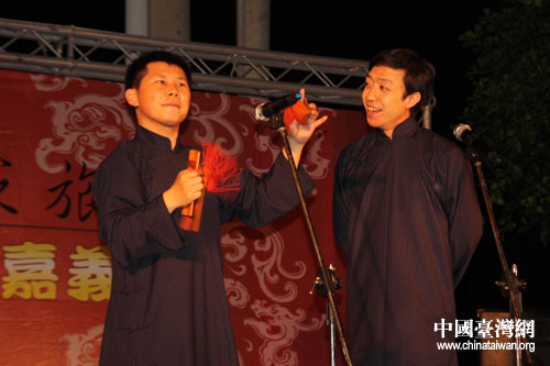 “地下有一張1000塊的新臺(tái)幣和一張100塊的,您撿哪張?1000的?當(dāng)然是兩張都撿!”5月14日晚,伴隨著精彩的相聲演出,嘉義市民雄鄉(xiāng)文隆村玄德宮前笑聲、掌聲不斷。何云偉、李菁、李偉健、武賓、王磊、應(yīng)寧等相聲演員,表演了他們的精彩劇目《機(jī)智問答》《雜學(xué)唱》《猜謎語》等深具京腔京韻的文藝節(jié)目。“泥人張”傳人張宏生成了“孩子王”,妙趣橫生、惟妙惟肖的一個(gè)個(gè)泥人,把小朋友們吸引的目不轉(zhuǎn)睛。