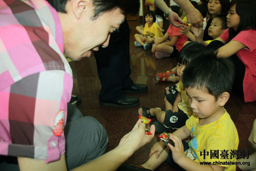 “糖葫蘆很好吃,姐姐給你也吃。”修緣育幼院是嘉義目前唯一的育幼院,在這里生活著20余名小朋友,他們與一般家庭的孩子一樣健康活潑,然而當(dāng)一位小朋友緊緊地抱住北京臺(tái)辦新聞處處長(zhǎng)金秀清時(shí),旁邊一位小朋友扯了扯金秀清的衣角,輕聲問(wèn)道:“阿姨,你是他的媽媽嗎?”讓記者感覺(jué)到了這些小朋友心中那種難于言語(yǔ)的悲傷:無(wú)論怎么樣的關(guān)懷都取代不了父母的愛(ài)。