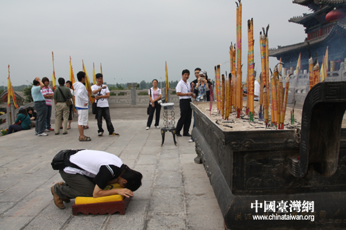 祭祀廣場前,進香叩拜自己的祖先(中國臺灣網 陳寧 攝)