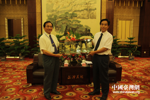 臺灣青年團向山西省委常委、秘書長高建民贈送臺灣瓷器(中國臺灣網 陳寧 攝) |