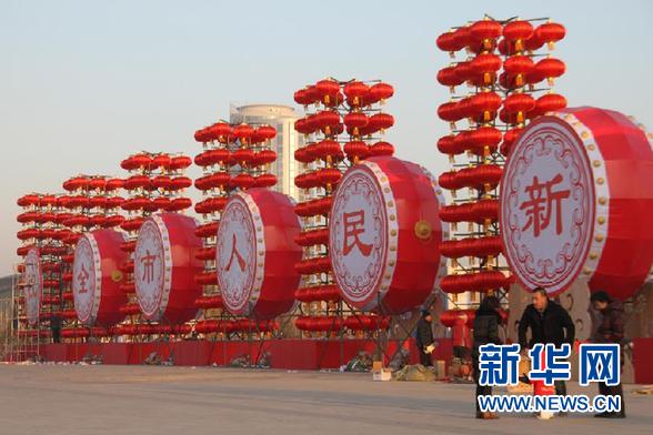 1月15日,一組大型彩燈在內蒙古赤峰市新城區街頭亮相。春節將至,內蒙古赤峰市大街小巷張燈結彩,喜迎龍年的到來。 新華社發(李富 攝)