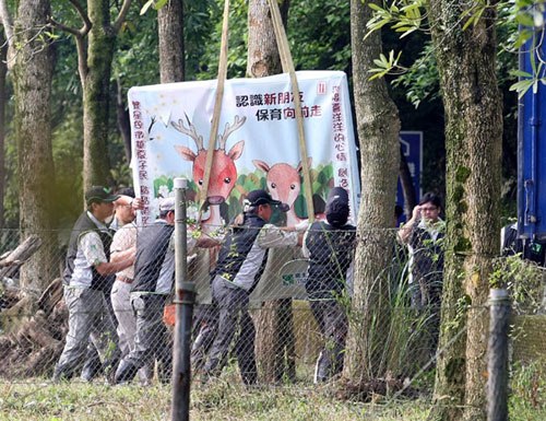 臺灣珍貴動物長鬃山羊“喜羊羊”、“樂羊羊”及梅花鹿“繁星”、“點點”帶著文山包種茶、鳳梨酥等6樣陪嫁禮,16日“出嫁”到山東威海市劉公島定居。