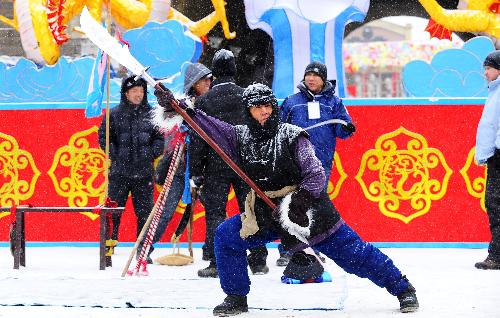 這是沈陽(yáng)關(guān)東廟會(huì)上的武術(shù)表演。