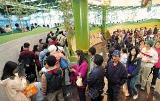 今天是臺灣春節假期最后一天,臺北木柵動物園涌進看大熊貓人潮,圖為大批民眾排隊參觀。來源:臺灣《聯合晚報》
