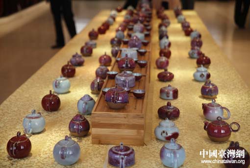 兩岸記者走進河南許昌禹州,感受鈞都魅力。圖為禹州神垕孔家鈞窯作品(中國臺灣網 吳捷 攝)
