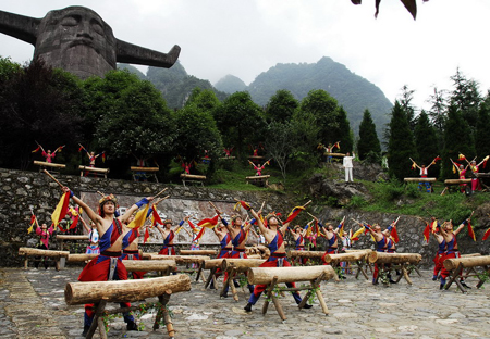 梆鼓,是遠古時期神農架山民驅趕野獸,保護莊稼不受損害的一種敲擊物。后來山民們用它傳遞情愛,打發漫漫長夜的寂寞。隨后,梆鼓又成為神農架人在喜慶的日子里擂動情緒、渲染氣氛的一種樂器。神農架梆鼓留下了神農架人民千百年來的期盼與向往,展示出原始山民豪放不羈的萬種風情。