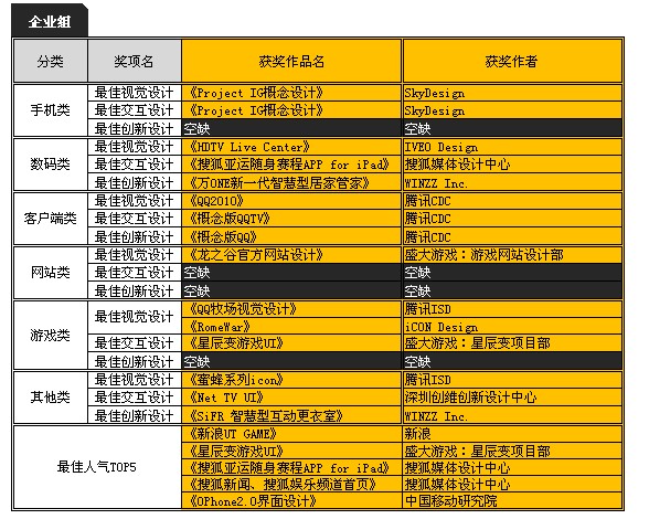 2010 Digital UI 優(yōu)秀用戶界面設(shè)計大賽獲獎名單