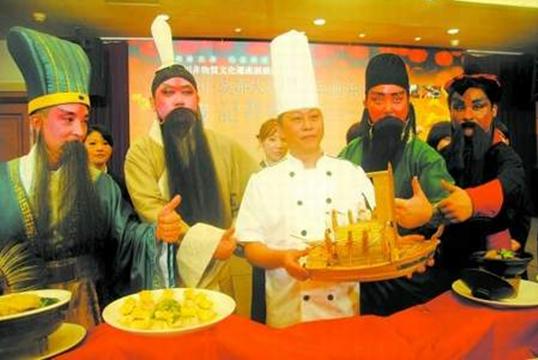 “錦囊妙計”、“草船借箭”、“減兵增灶”、“木牛流馬”、“水淹七軍”……一個個耳熟能詳的經典三國故事,變幻成了一道道地道的川味美食,昨日首度驚艷亮相臺北。充滿巧思與創意的“三國宴”,不僅讓臺灣同胞一飽口福,更讓他們從美食中重溫那些流傳久遠而令人神往的經典三國故事。