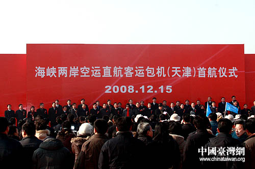 海峽兩岸空運直航客運包機天津首航儀式15日上午在天津濱海新區機場舉行