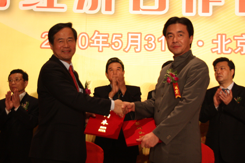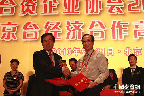 中國臺灣網5月31日北京消息 北京臺資企業協會成立二十周年慶典活動暨京臺經濟合作高端論壇31日在京舉行,圖為北京市臺協與島內行業團體簽署合作協議。(中國臺灣網 趙輝 攝)