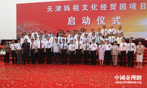 津臺(tái)媽祖文化經(jīng)貿(mào)園項(xiàng)目今日在津啟動(dòng),圖為與會(huì)嘉賓合影。(中國臺(tái)灣網(wǎng) 張蕾 攝影)