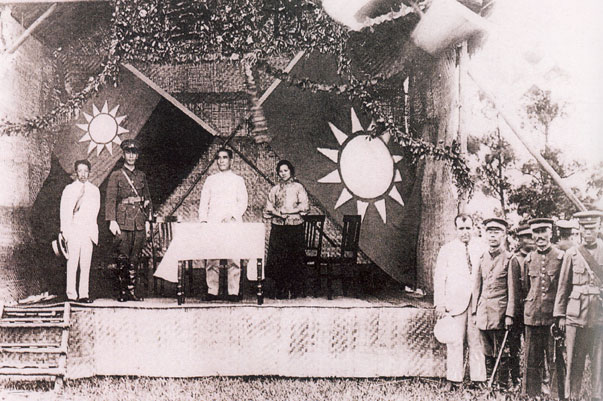 1924年6月16日,孫中山、宋慶齡在黃埔軍校開(kāi)學(xué)典禮的主席臺(tái)上。
