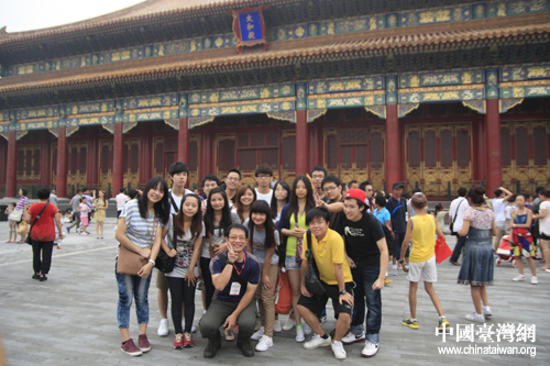 中國(guó)臺(tái)灣網(wǎng)8月12日北京消息 淺淺海峽,濃濃情誼,兩岸學(xué)子,心手相連。8月11日,由中國(guó)宋慶齡基金會(huì)和臺(tái)灣“十大杰出青年基金會(huì)”共同組織的臺(tái)灣青年學(xué)生交流團(tuán),參觀了故宮博物院、景山公園和天壇。在結(jié)束五天的北京參訪之旅后,他們將前往江南和西安,繼續(xù)開展以“歷史為根、文化為魂”為主旨的交流活動(dòng)。
