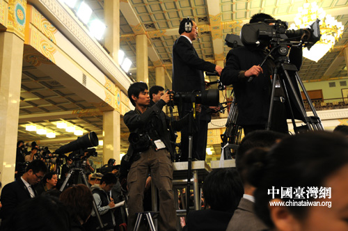 中國臺灣網3月18日北京消息 每年兩會的總理記者見面會,都是最受矚目的議程之一。各路媒體為了能搶占有利地形拍攝或提問,奇招不一而足。當大家把關注點齊齊對準臺上的總理時,媒體自己也成了這場新聞事件中難以置身事外的一員。 (李徽/文并圖)