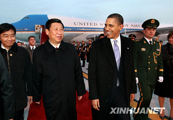11月16日下午,美國總統(tǒng)奧巴馬乘專機從上海飛抵北京,國家副主席習近平前往北京首都國際機場迎接。新華社記者 龐興雷 攝