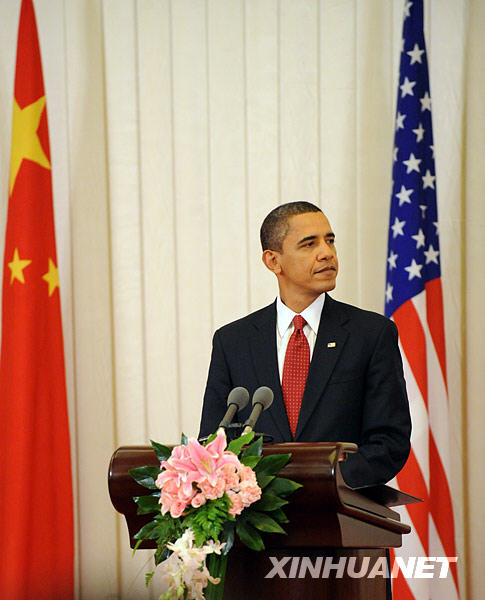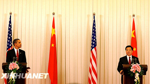11月17日,中國(guó)國(guó)家主席胡錦濤和美國(guó)總統(tǒng)奧巴馬在北京人民大會(huì)堂共同會(huì)見(jiàn)中外記者。新華社記者劉建生攝