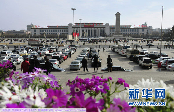 3月1日,人民大會堂東門外的廣場。十一屆全國人大第四次會議、全國政協(xié)十一屆四次會議即將開幕。新華網(wǎng) 翟子赫 攝