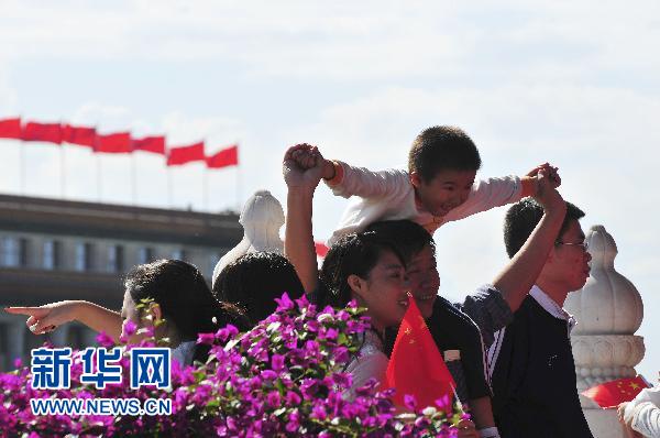 10月2日,游客在北京天安門廣場游覽。當日,北京天氣晴好,天安門、故宮地區迎來如潮的游人。 新華社發(陳柏材 攝)