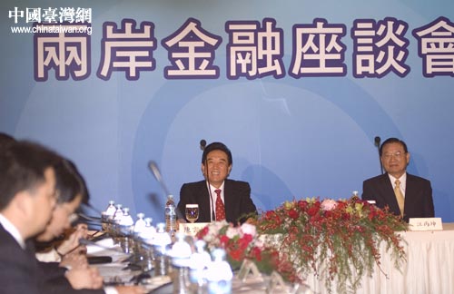 中國臺灣網11月5日臺北消息 由海協會、;鶗餐鞒,兩岸金融界主管部門及業界人士參加的兩岸金融座談會今天上午在臺北圓山飯店舉行。海協會會長陳云林、海基會董事長江丙坤出席并致辭。