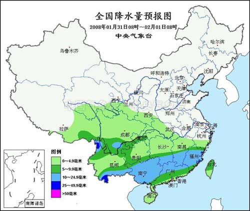 31日至2月1日,西藏東部、青海東南部、西北地區東南部、江漢西部、江南中西部偏北地區以及西南地區北部和東部等地陰有小到中雪(雨)或雨夾雪,其中,西藏東南部、云南西北部和東北部以及川西高原南部的部分地區有大到暴雪。貴州、湖南南部、江西中部等地的部分地區有凍雨,云南南部的部分地區有大雨。
