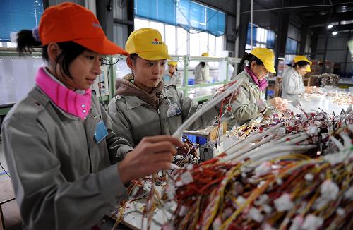 資料圖片:江西省上猶縣返鄉農民工在該縣工業園區行田電產有限公司上班(11月18日攝)。2008年下半年以來,受國際金融危機影響,江西省就業形勢非常嚴峻。為此,江西省綜合運用各種政策保企業促就業,多渠道搭建就業平臺,免費培訓農民工轉崗轉業和自主創業,至今年10月底,江西省返鄉農民工315萬中已有308.5萬在省內外實現就業創業。新華社記者 周科 攝