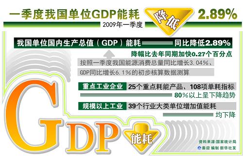 圖表:2009年一季度我國單位GDP能耗降低2.89% 新華社發