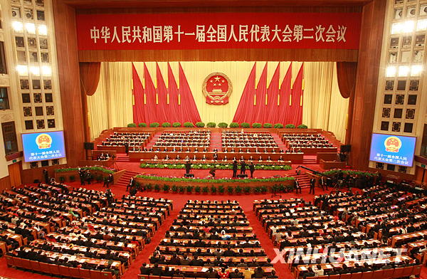 3月13日9時,第十一屆全國人民代表大會第二次會議在北京人民大會堂舉行閉幕會。新華社記者 龐興雷攝