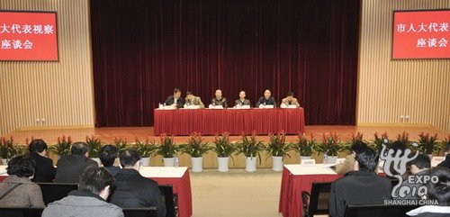 上海市人大代表年終視察活動來到世博園內在建的“中華美食街”