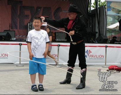 15日中午,伴隨著德州牛仔的激情表演,美國(guó)館德克薩斯活動(dòng)周拉開帷幕,至18日,在美國(guó)館前舞臺(tái)將舉辦德州牛仔技巧展示、當(dāng)?shù)刂麡逢?duì)現(xiàn)場(chǎng)演唱等一系列充滿德州特色的文藝演出。美國(guó)德克薩斯州州長(zhǎng)瑞克·派瑞(Rick Perry)、2010年上海世博會(huì)美國(guó)館總代表費(fèi)樂友(José H. Villarreal)以及近百位來自德克薩斯州的各界人士出席活動(dòng)周開幕式。