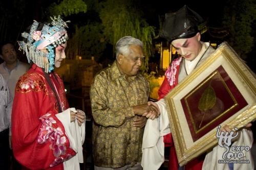 新加坡總統(tǒng)納丹在觀摩上海世博會之余,22日晚特意來到青浦朱家角觀賞實景園林版昆曲《牡丹亭》。中國駐新加坡大使魏葦和新加坡駐華大使陳燮榮等陪同觀賞。