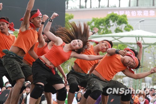 5月13日,菲律賓藝術家們在上海世博園亞洲廣場表演現代舞蹈,表達菲律賓人民富有活力的現代生活。