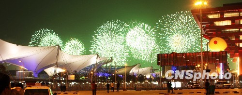 4月30日晚,上海世博會開幕焰火晚會在黃浦江兩岸舉行。 中新社發 沈春琛 攝