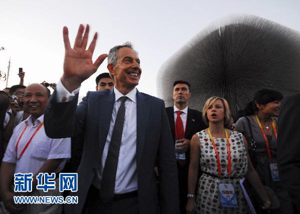 7月27日,英國前首相布萊爾造訪上海世博會英國館。當日是2012年英國倫敦奧運會開幕倒計時兩周年紀念日,上海世博會英國館于晚間舉行倒計時慶;顒,英國前首相布萊爾到場助興。 新華社發