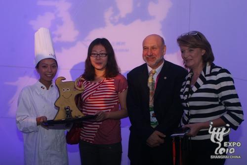 10月16日,當(dāng)天世博園參觀者超過(guò)100萬(wàn)人次之際,2010年上海世博會(huì)比利時(shí)-歐盟館迎來(lái)了一位特殊的客人——第600萬(wàn)名游客。館長(zhǎng)高美麗親自歡迎陳娟并陪同參觀,比利時(shí)歐盟展館鉆石展廊還向她贈(zèng)送了一份比利時(shí)館的精美鉆飾。