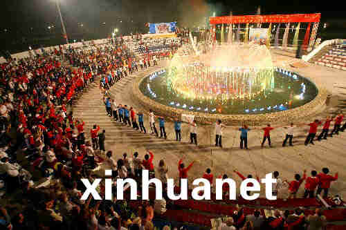 8月4日,在俄羅斯“海洋”全俄兒童中心,來自中國四川地震災區的孩子們和俄羅斯輔導員共同參加告別晚會。新華社記者鄭悅攝